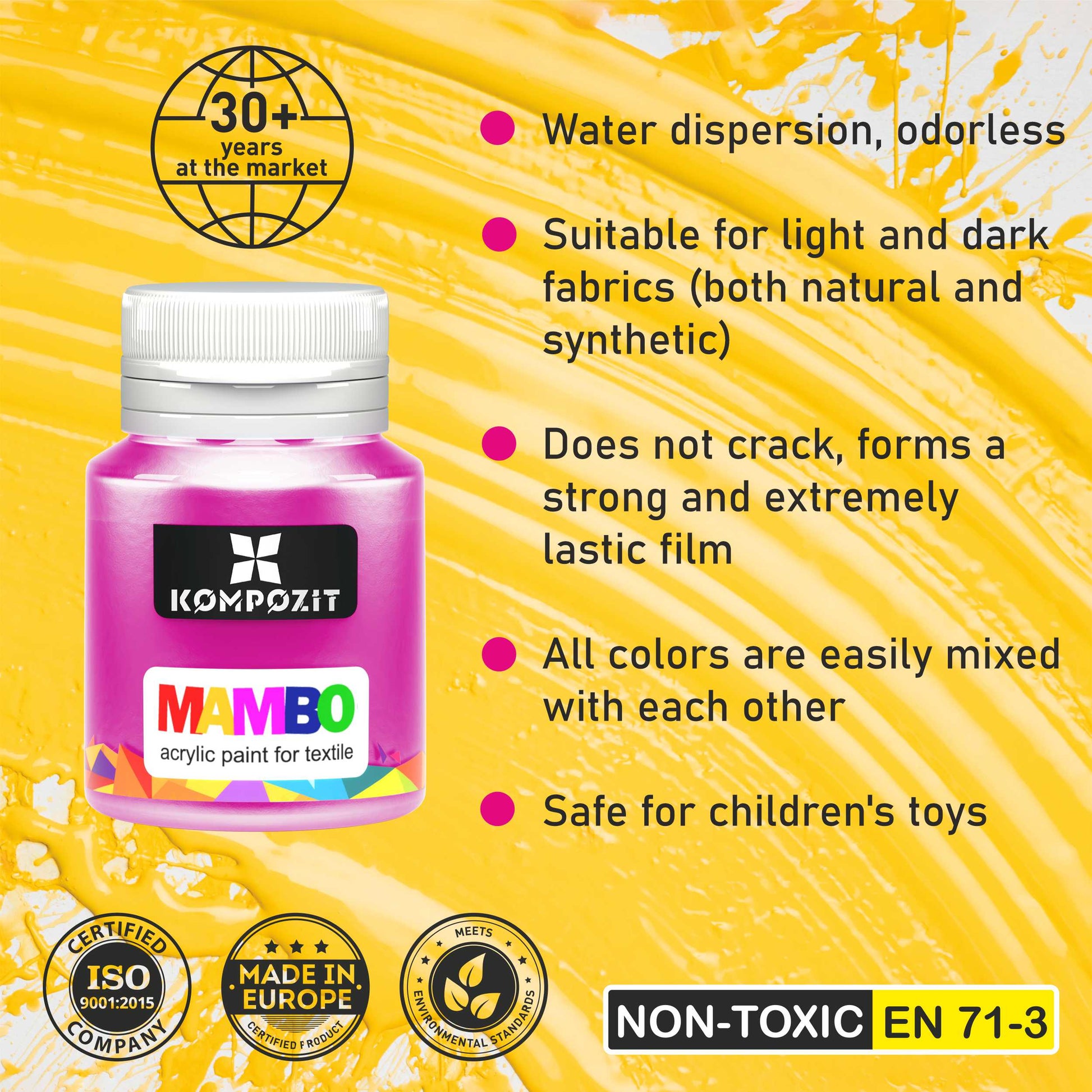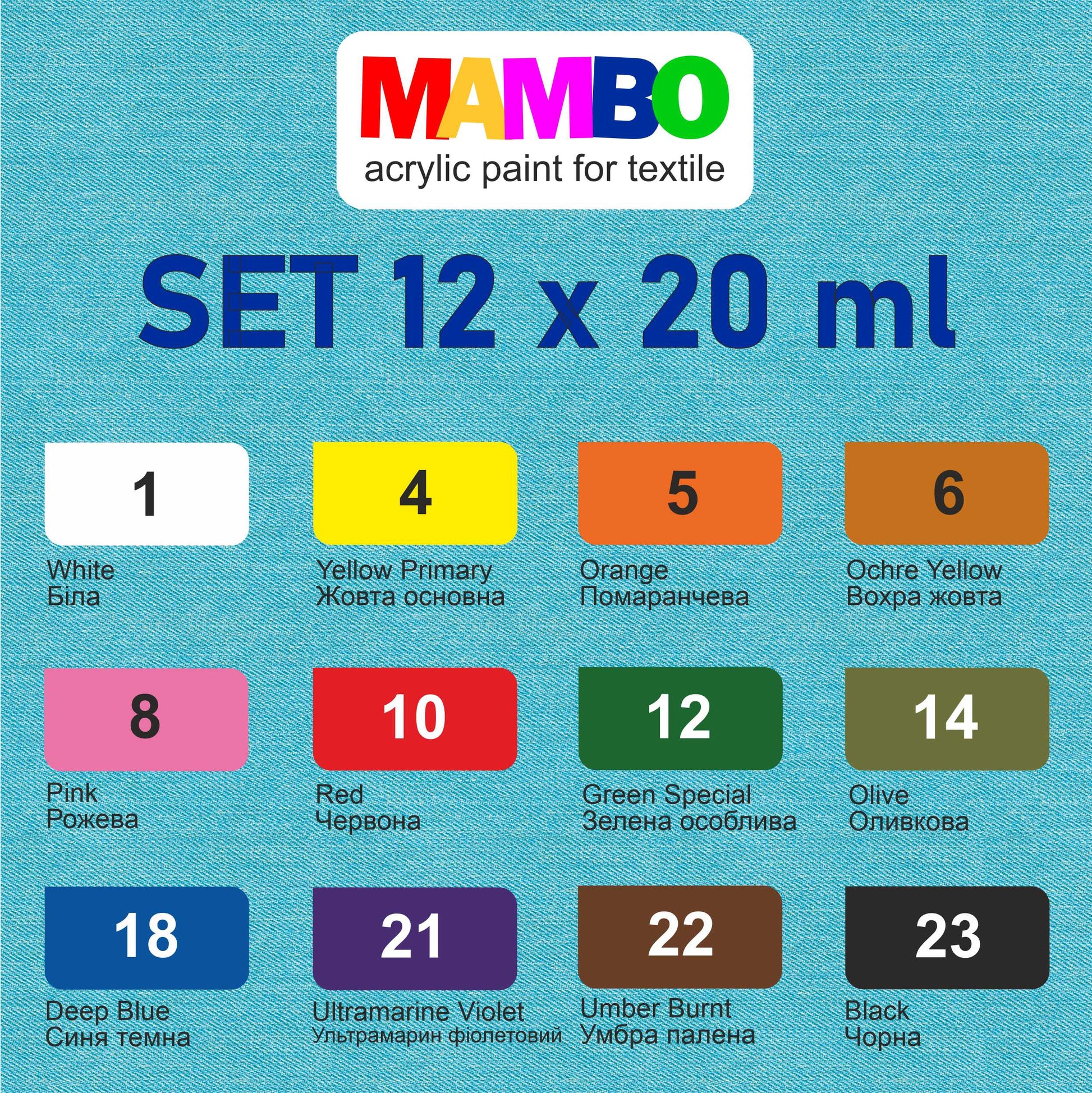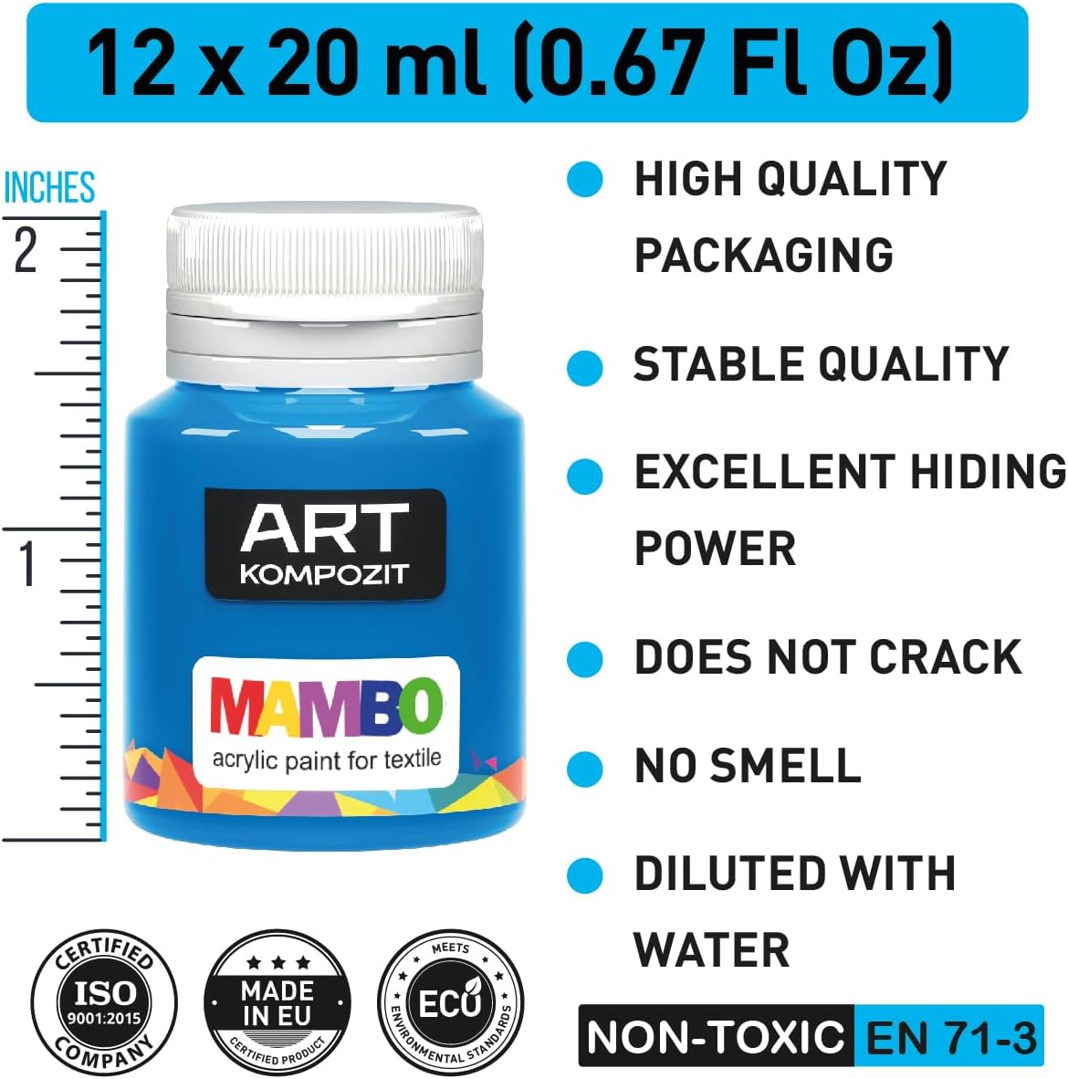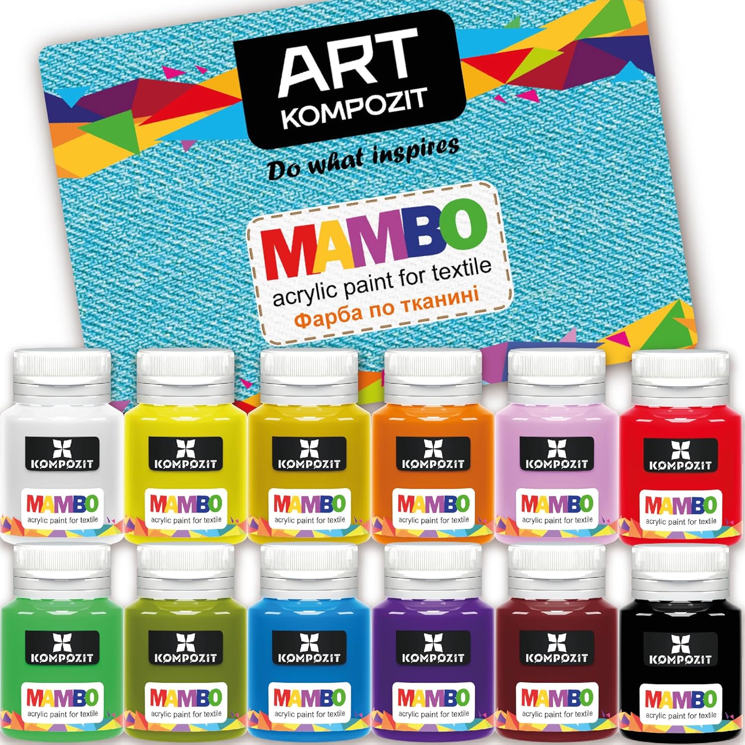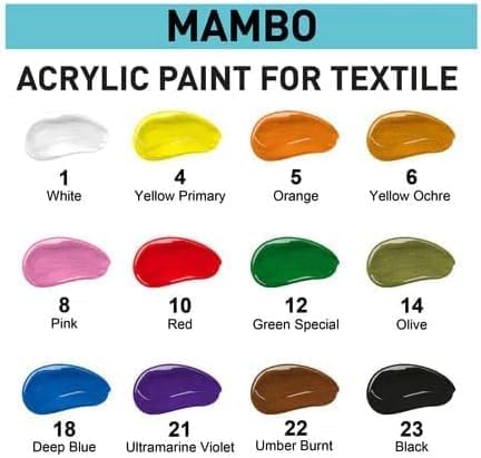 Permanent Acrylic Fabric Paint Set For Clothes 12 x 20 ml (0.67 Fl Oz) Textile, Sneakers. Made in Europe
